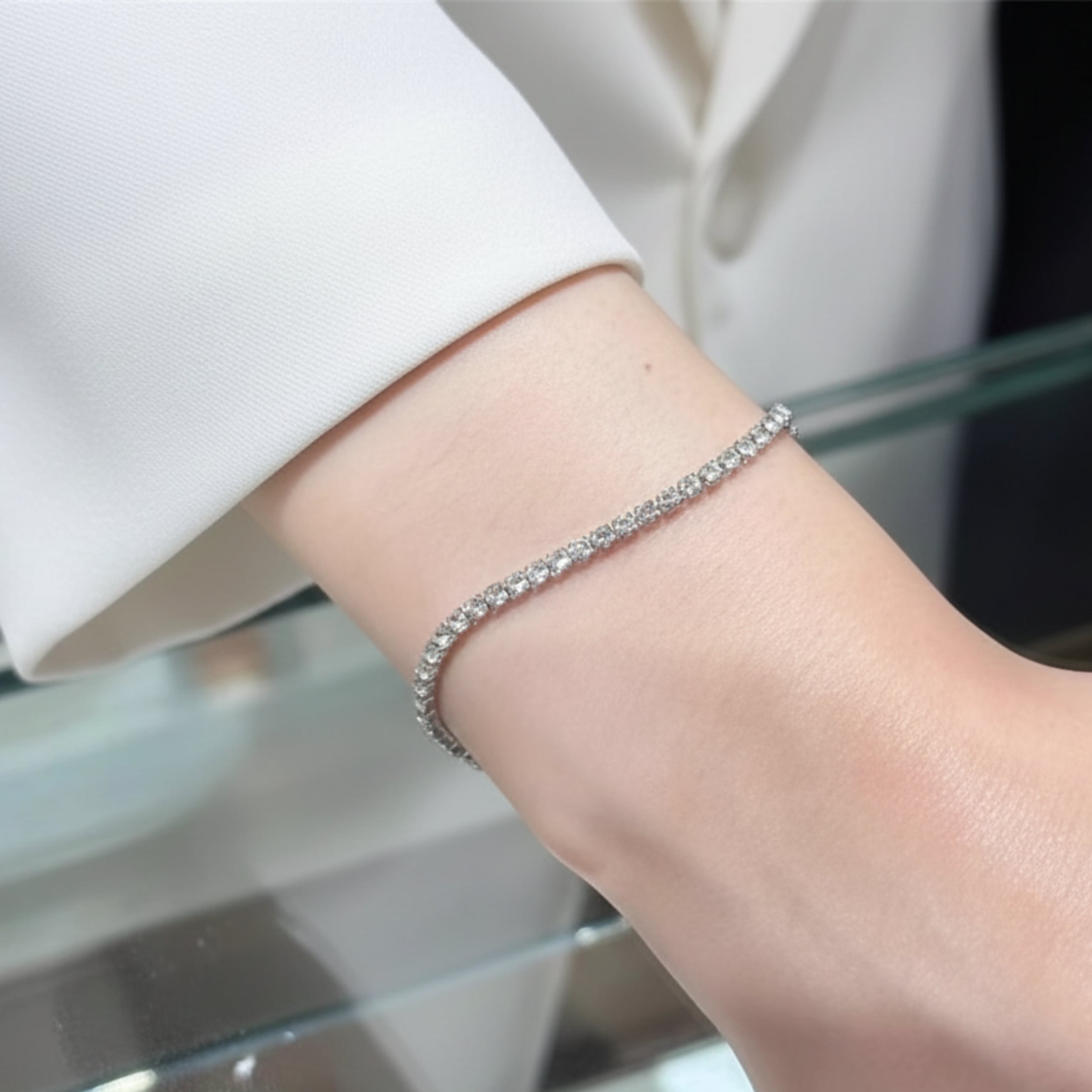 一列に並んだジルコニアが、手元を動かすたびに繊細な煌めきを放ちます。